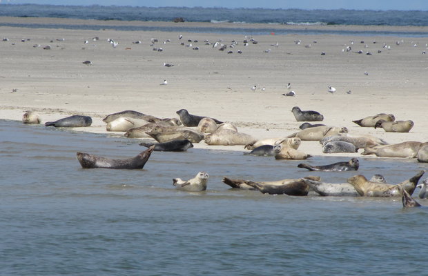 Unterwegs taucht eine Sandbank auf – Seehunde! Die Jungen rufen nach ihren Eltern, ihr typisches Jaulen vermischt sich mit dem Klang der Wellen. Ein magischer Moment.