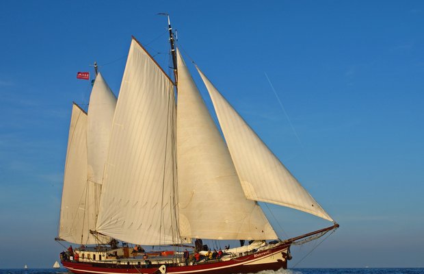 Die Segel werden unter Anleitung von Skipper und Matrose gesetzt. Die Schoten werden belegt und das Schiff schneidet durchs Wasser. Ohne auch nur einen Tropfen Diesel, in aller Stille, nur mit der Kraft von Wind und Tuch. Ein Wunder. Der Skipper erklärt Ihnen dies gern.
