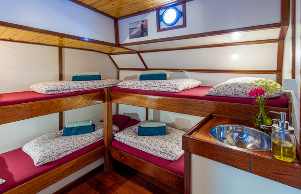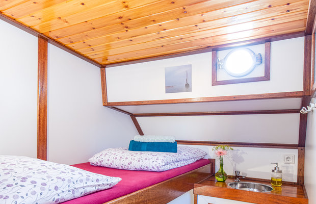 Wählen Sie bei der Buchung zwischen einer privaten Kabine oder einer Koje (Bett) in einer Gemeinschaftskabine. Männer und Frauen werden in Gemeinschaftskabinen getrennt untergebracht. Es sei denn, Sie reisen als Paar an und haben sich eine eigene Kabine gebucht. Die Verfügbarkeit hängt von der Schiffsbelegung ab.