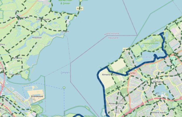 Nach der Ankunft beim Gemahl Blocq van Kuffeler steigen Sie auf Ihr E-Bike und starten zu einer abwechslungsreichen Radtour entlang der Küste Flevolands, über die Noorderplassen bis nach Muiden (ca. 27 km). Sie fahren ohne Guide, orientieren sich an einem gut ausgeschilderten Knotenpunktsystem und bestimmen Tempo sowie Pausen ganz nach Ihren eigenen Wünschen.