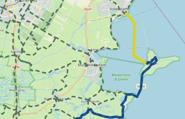 Der Dienstag steht ganz im Zeichen der Freiheit. Die heutige Route führt Sie von Muiden entlang Amsterdam weiter über die Westküste des Markermeers bis nach Marken (ca. 33 km).