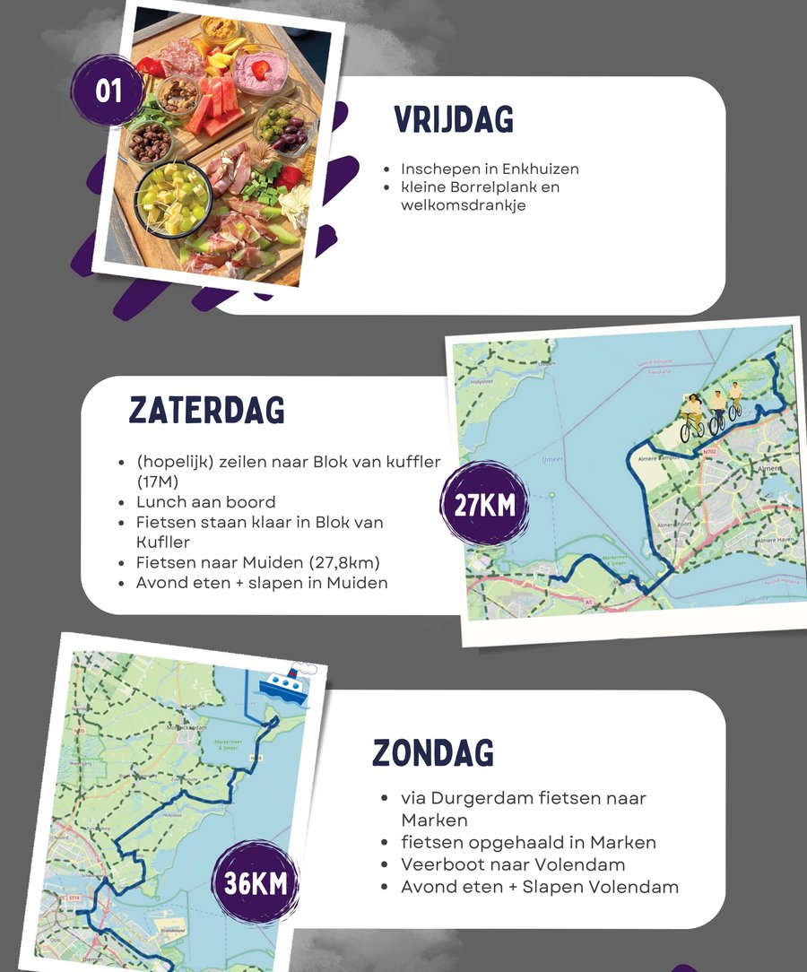 Als genussvoller Abschluss erwartet Sie ein ausgiebiger Lunch während des Segelns. Am Nachmittag erreichen wir Enkhuizen und verabschieden uns – mit frischer Energie und schönen Erinnerungen an ein ganz besondere Segel- und Fahrradtour..